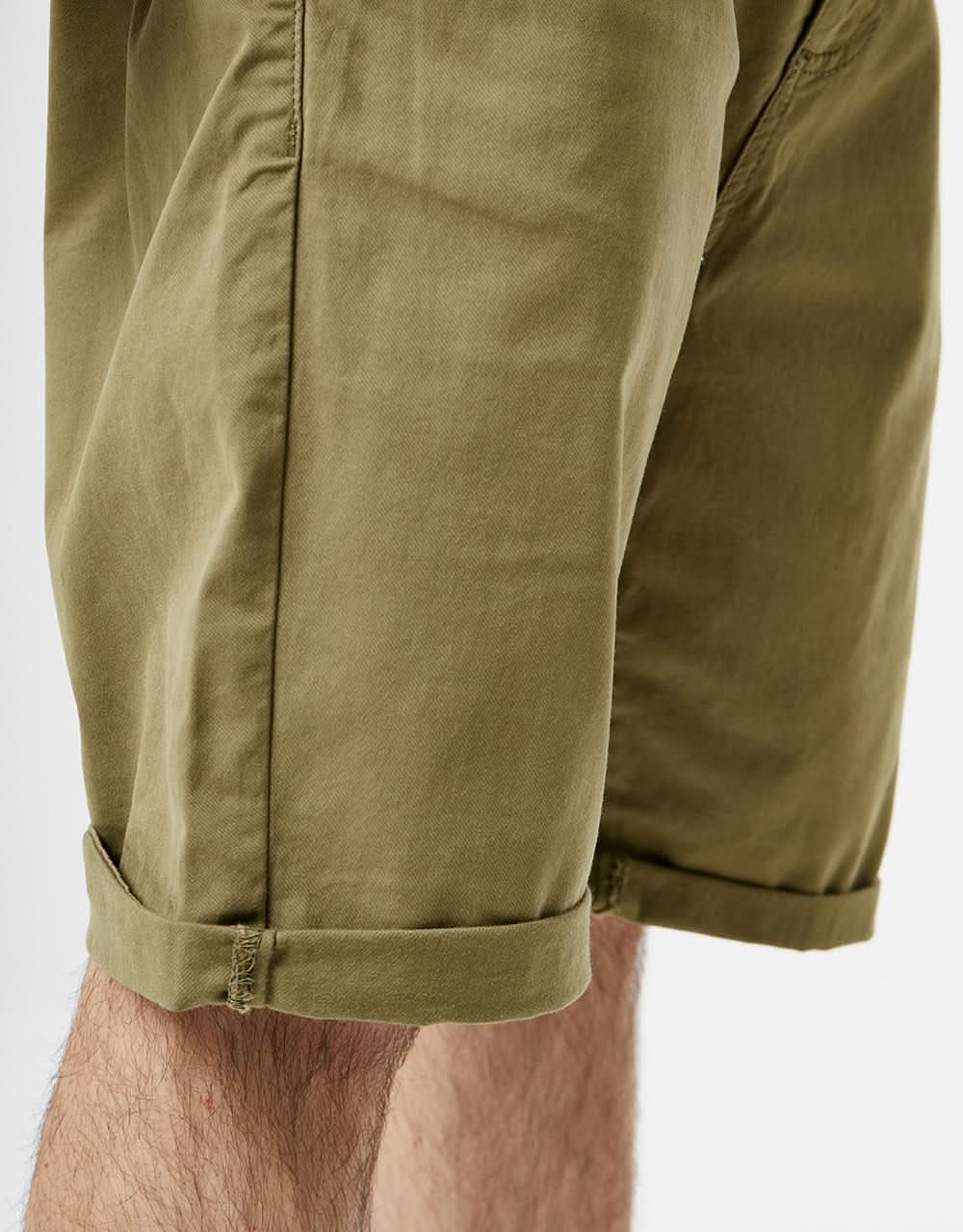 Following the success of our chino trousers range, we present the perfect chino short for the summer months, at an unbelievable price. In an all-over Light Olive colourway, these shorts feature four large outer pockets, belt straps and a zip fly with button top. They are a slim fit and look great rolled up.