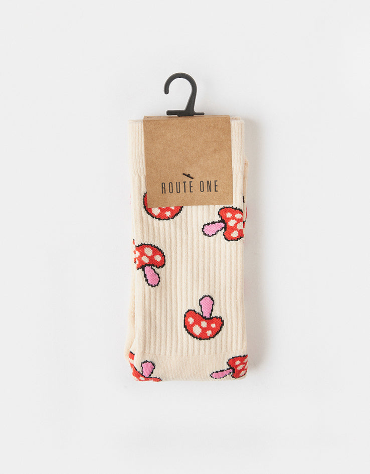 The Route One Shrooms Socks in Ivory have been constructed from a premium, heavyweight cotton/polyamide blend with a touch of elastane for comfort and subtle stretch. Complete with a ribbed ankle, jacquard print details and a cushioned foot bed. At such an affordable price, you really cannot go wrong.