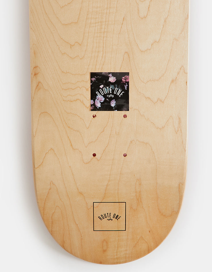 The Route One Square Arch Logo Small Sticker is a 5.2x5.2cm glossy vinyl sticker that features our classic Arch Logo with a Floral backing. Stick it to your deck, bedframe or laptop - wherever you like. Super sticky, super glossy and super nice.