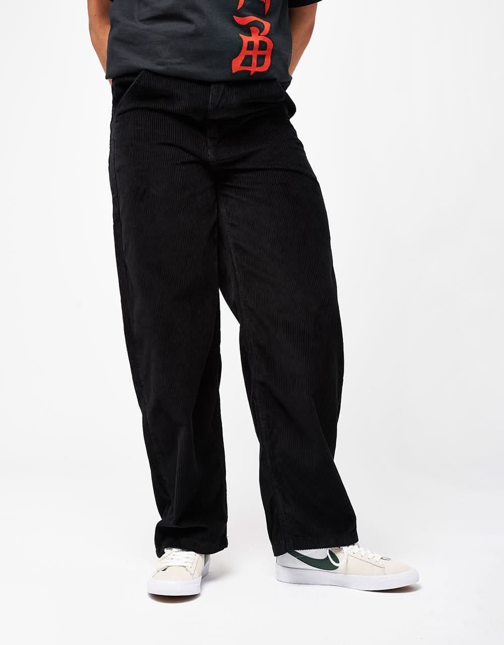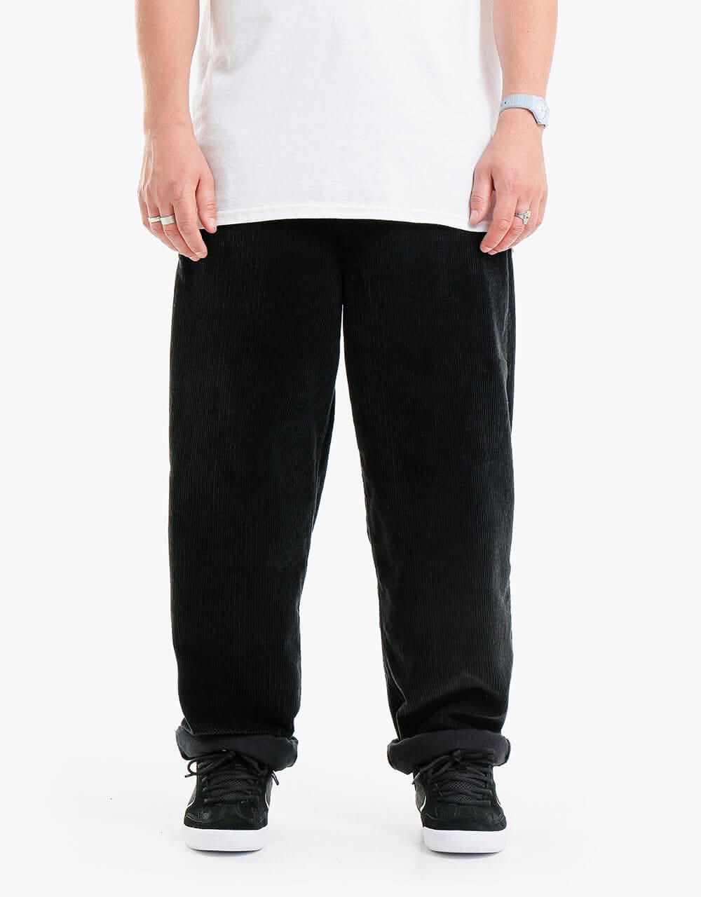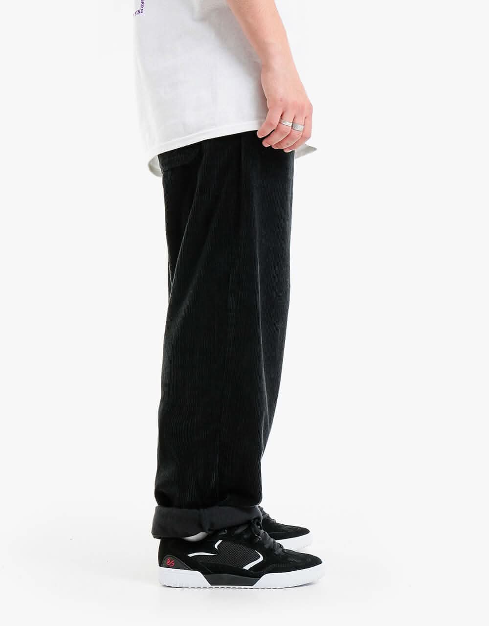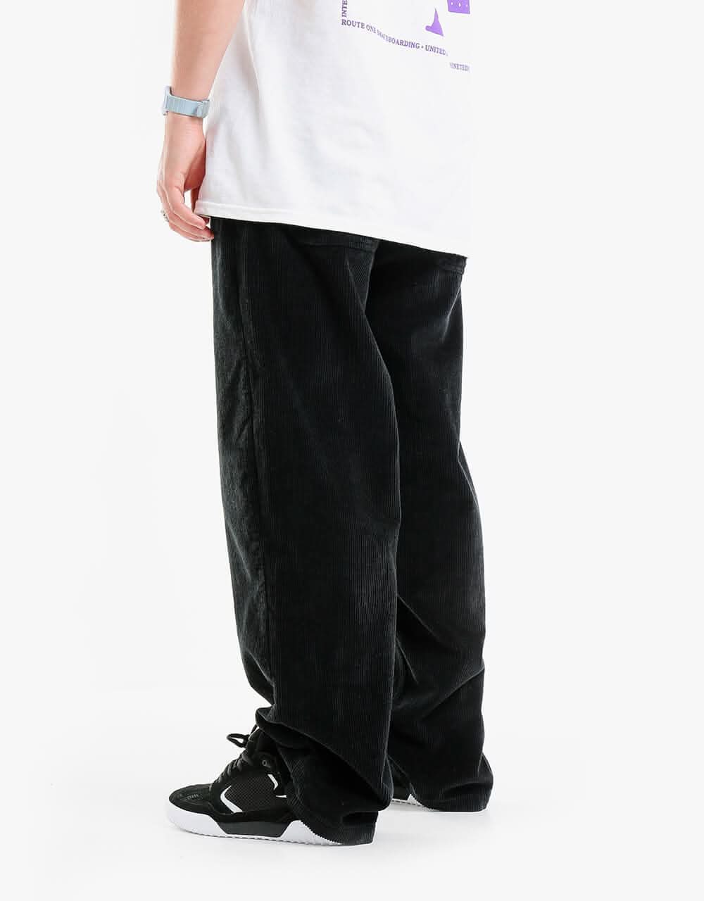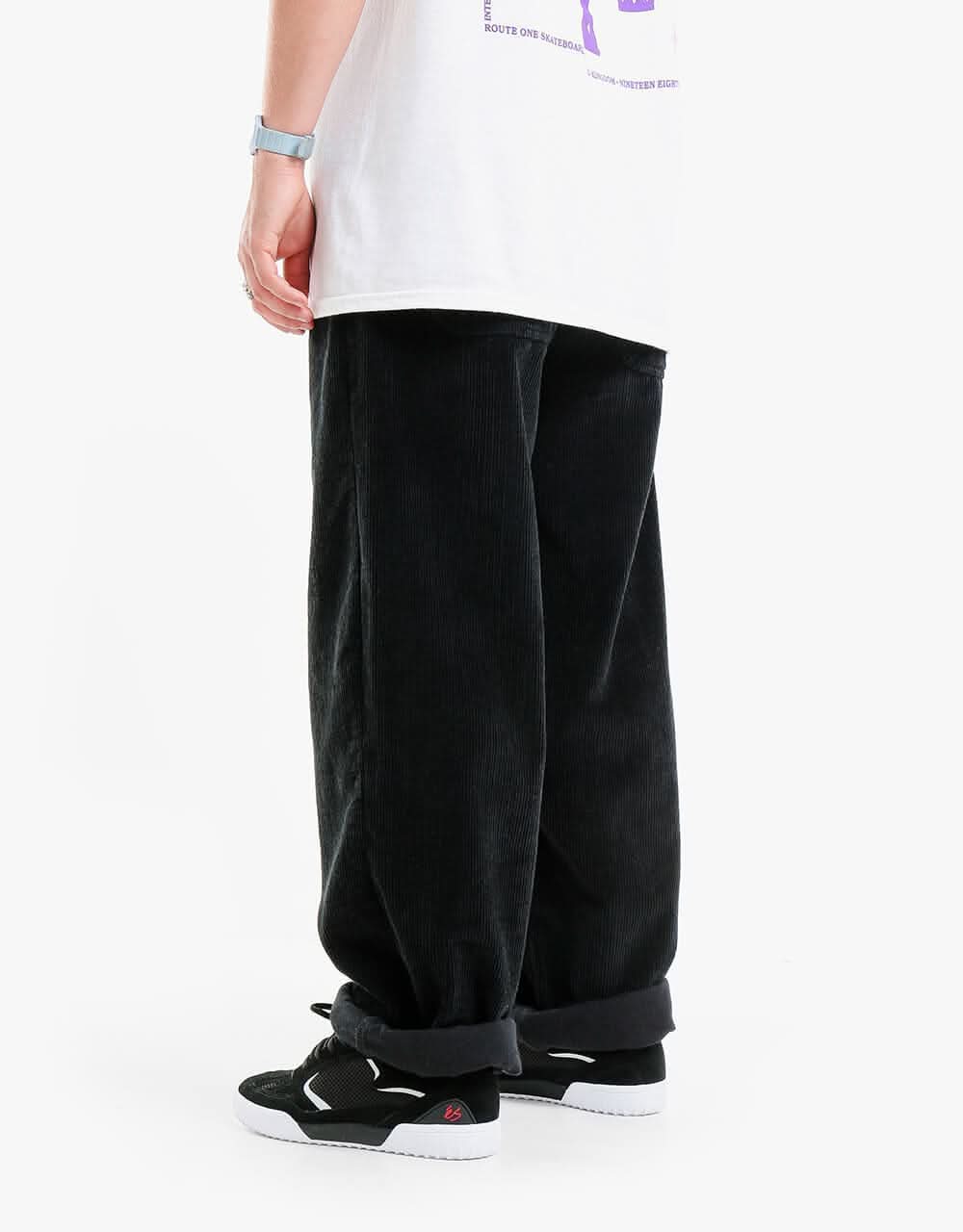 Bringing together two of our bestselling styles, the super baggy and the relaxed big wale cords we introduce the Route One Super Baggy Big Wale Cords in Black. Constructed from 100% Cotton heavyweight Corduroy these super baggy classic four-pocket designed trousers boast a secure YKK zip-fly, branded waist button, and subtle rear chino style pockets. These classically styled trousers will combine effortlessly with any casual tee or shirt.