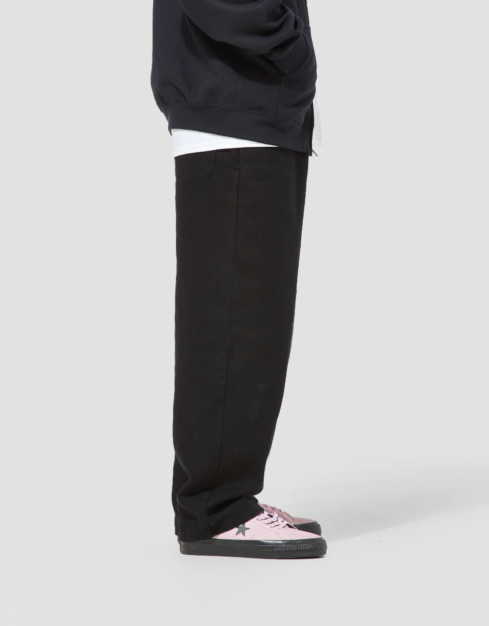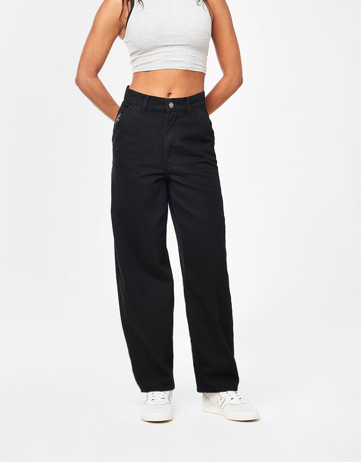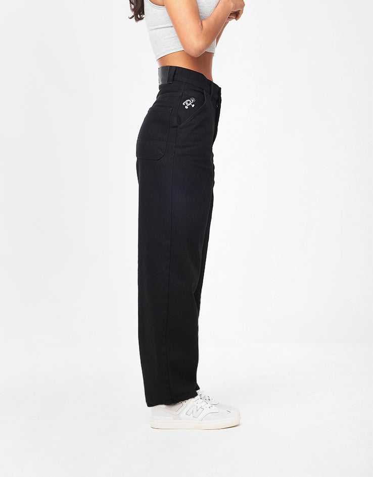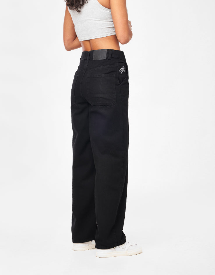 Our supersized ‘Super Baggy’ denim in flat black has a low crotch and voluminous leg offering an oversized fit with tapered hem to sit perfectly on your shoe. Constructed from our premium 100% Cotton 13oz denim, it is robust and heavy duty. Featuring wide belt loops, faux leather patch, YKK zipper, branded button waist fastening and includes 5 pockets. Available in a standard leg and a short leg and in a variety of different washes.