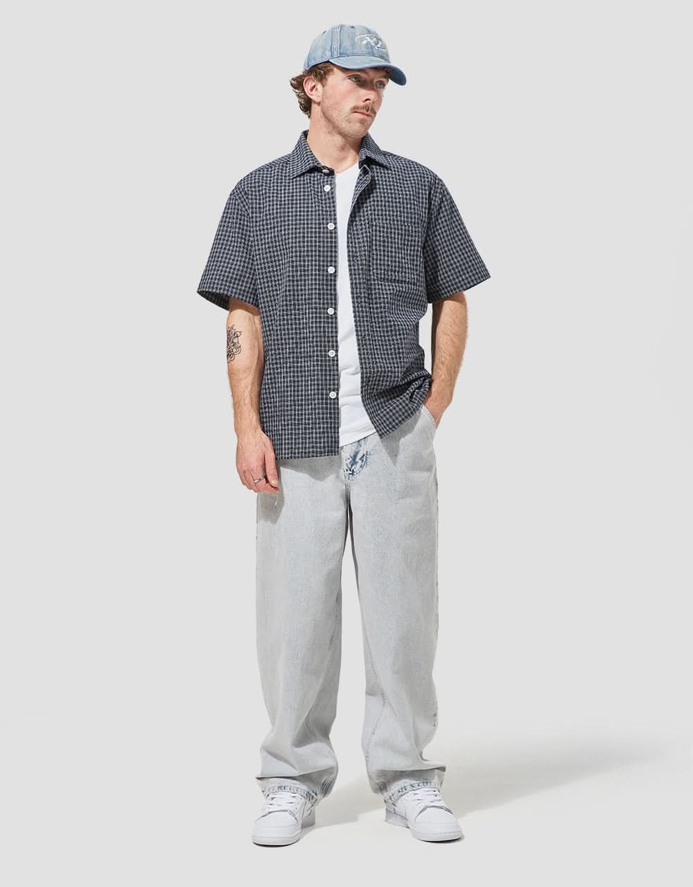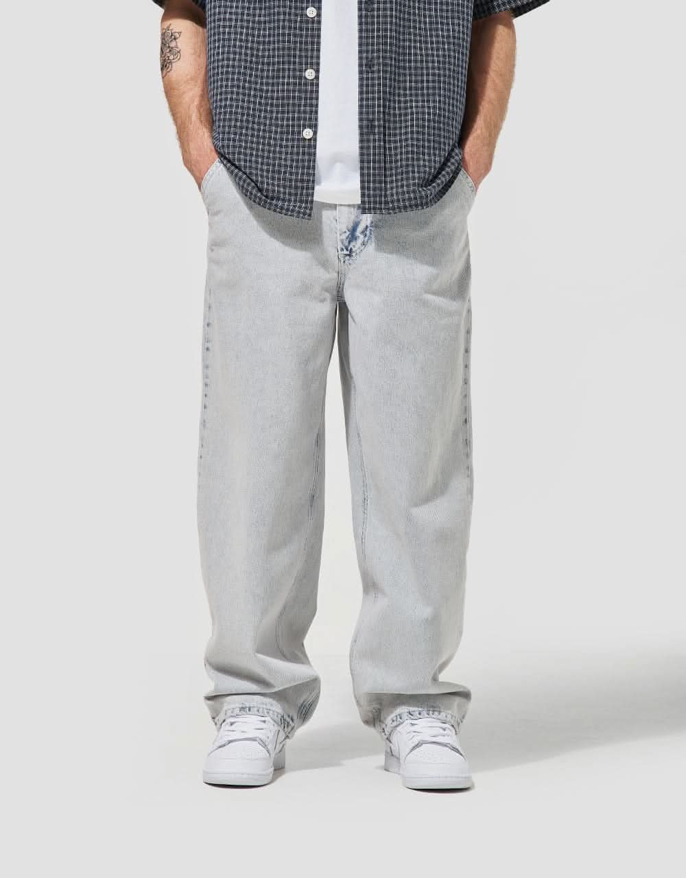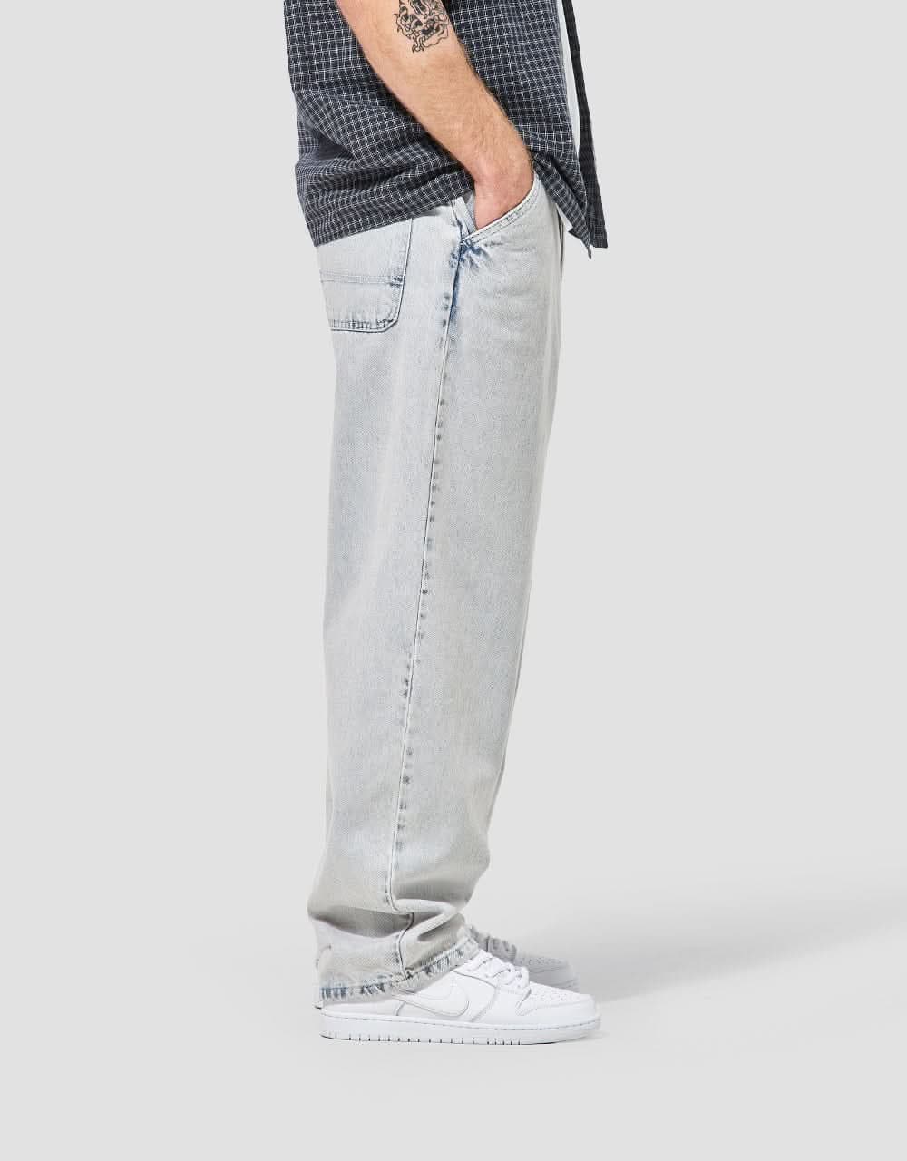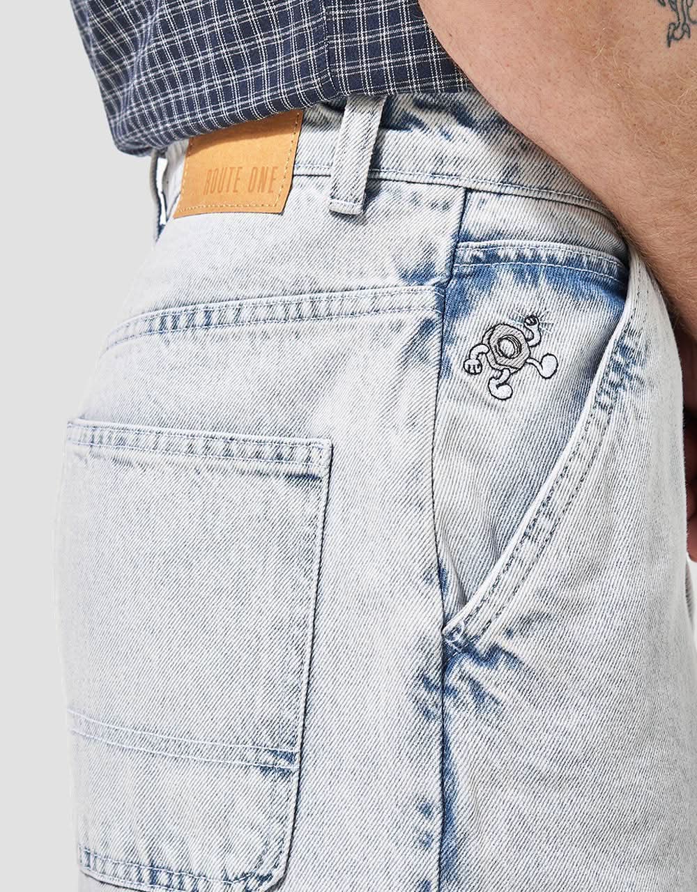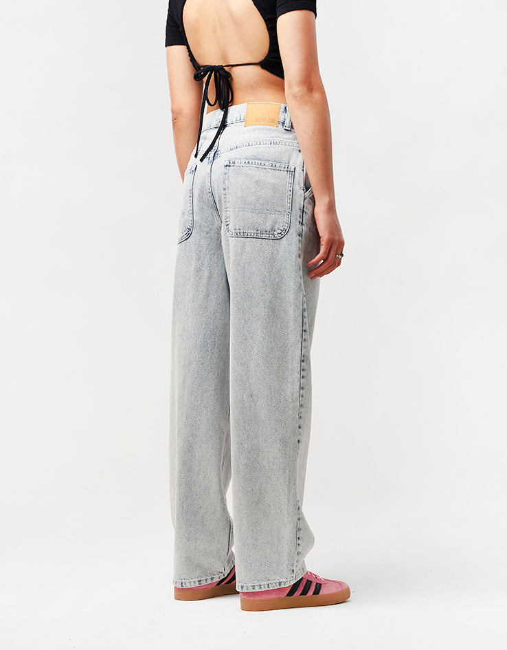 Our supersized ‘Super Baggy’ denim in Stone wash has a low crotch and voluminous leg offering an oversized fit with tapered hem to sit perfectly on your shoe. Constructed from our premium 100% Cotton 13oz denim, it is robust and heavy duty. Featuring wide belt loops, faux leather patch, YKK zipper, branded button waist fastening and includes 5 pockets. Available in a standard leg and a short leg and in a variety of different washes.