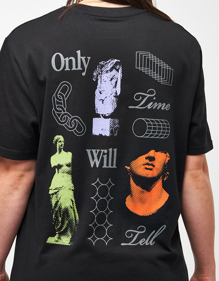 Crafted from 100% organic cotton, the Route One Time Will Tell  T-Shirt offers all-day comfort with a soft feel, ribbed crew neckline, and relaxed short sleeves. The updated silhouette offers an improved fit, while exclusive in-house illustrations screen-printed on the left chest and boldly across the back deliver a standout look.