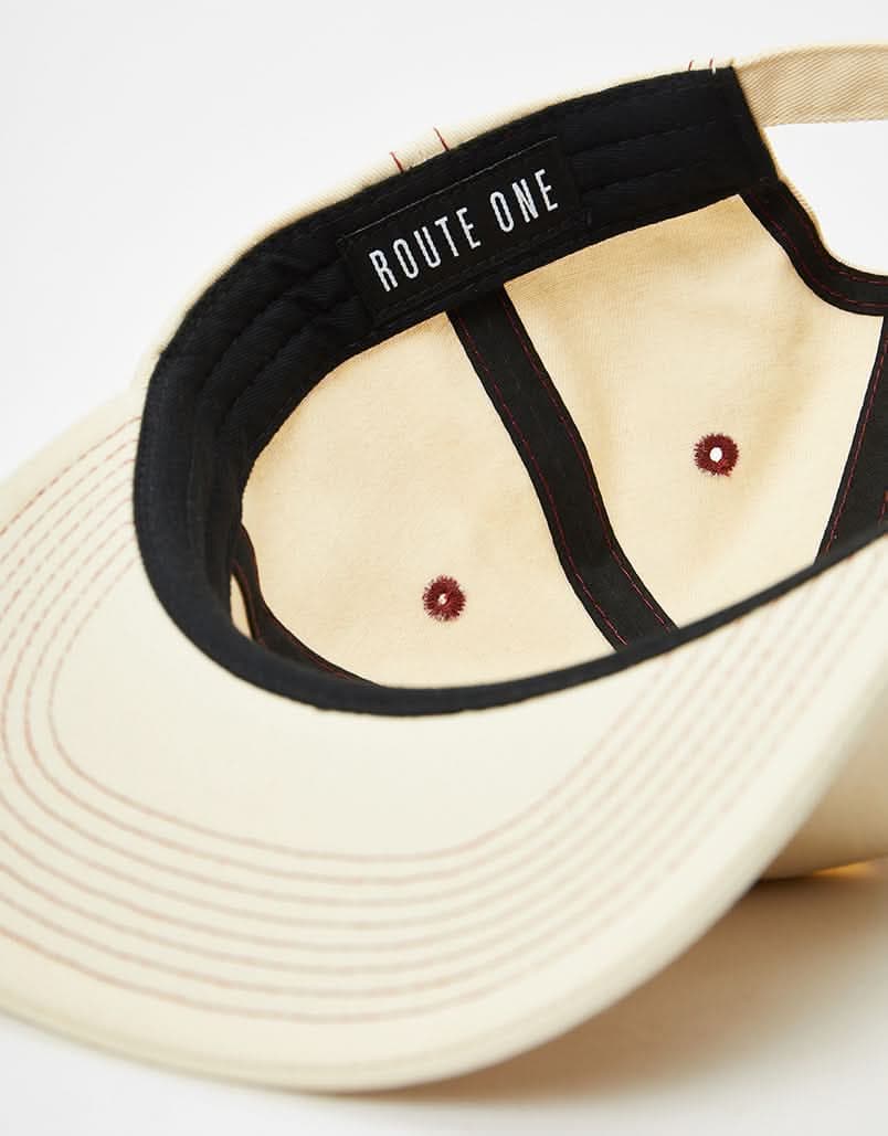 Route One Unstructured Contrast Stitch Strapback Cap - Natural/Burgundy