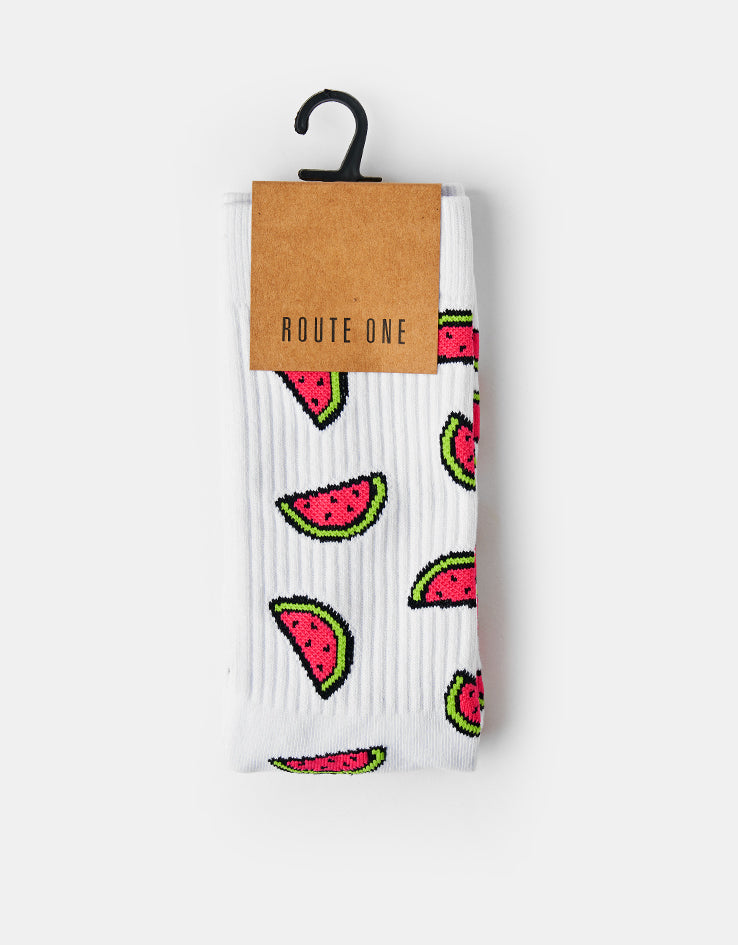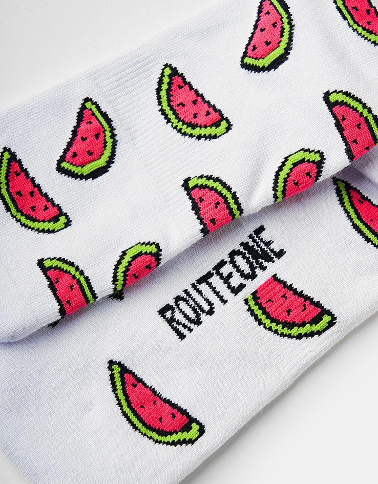 The Route One Watermelon Socks have been constructed from a premium, heavyweight cotton/polyamide blend with a touch of elastane for comfort and subtle stretch. Complete with a ribbed ankle, jacquard print details and a cushioned foot bed. At such an affordable price, you really cannot go wrong.
