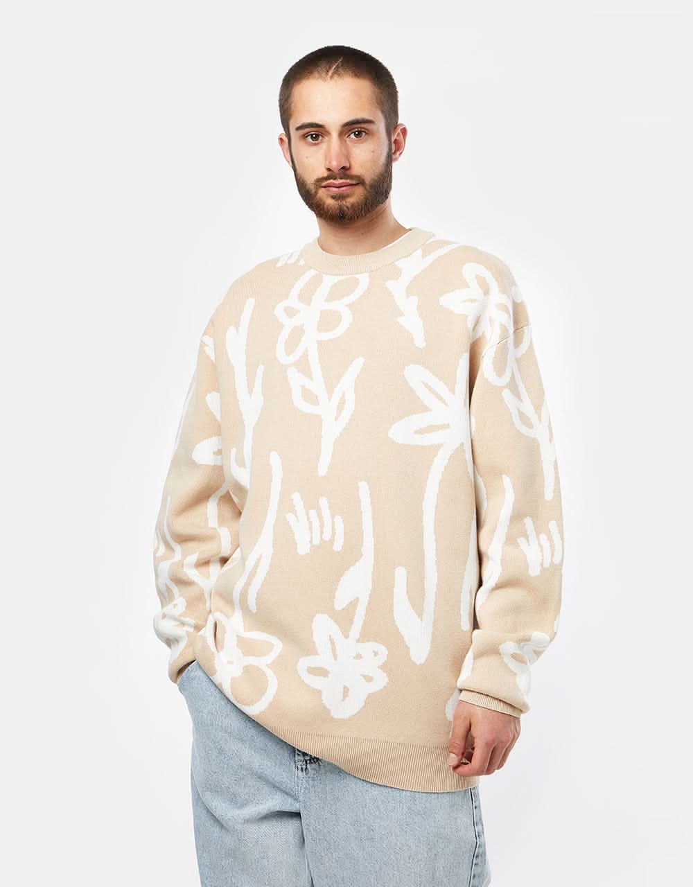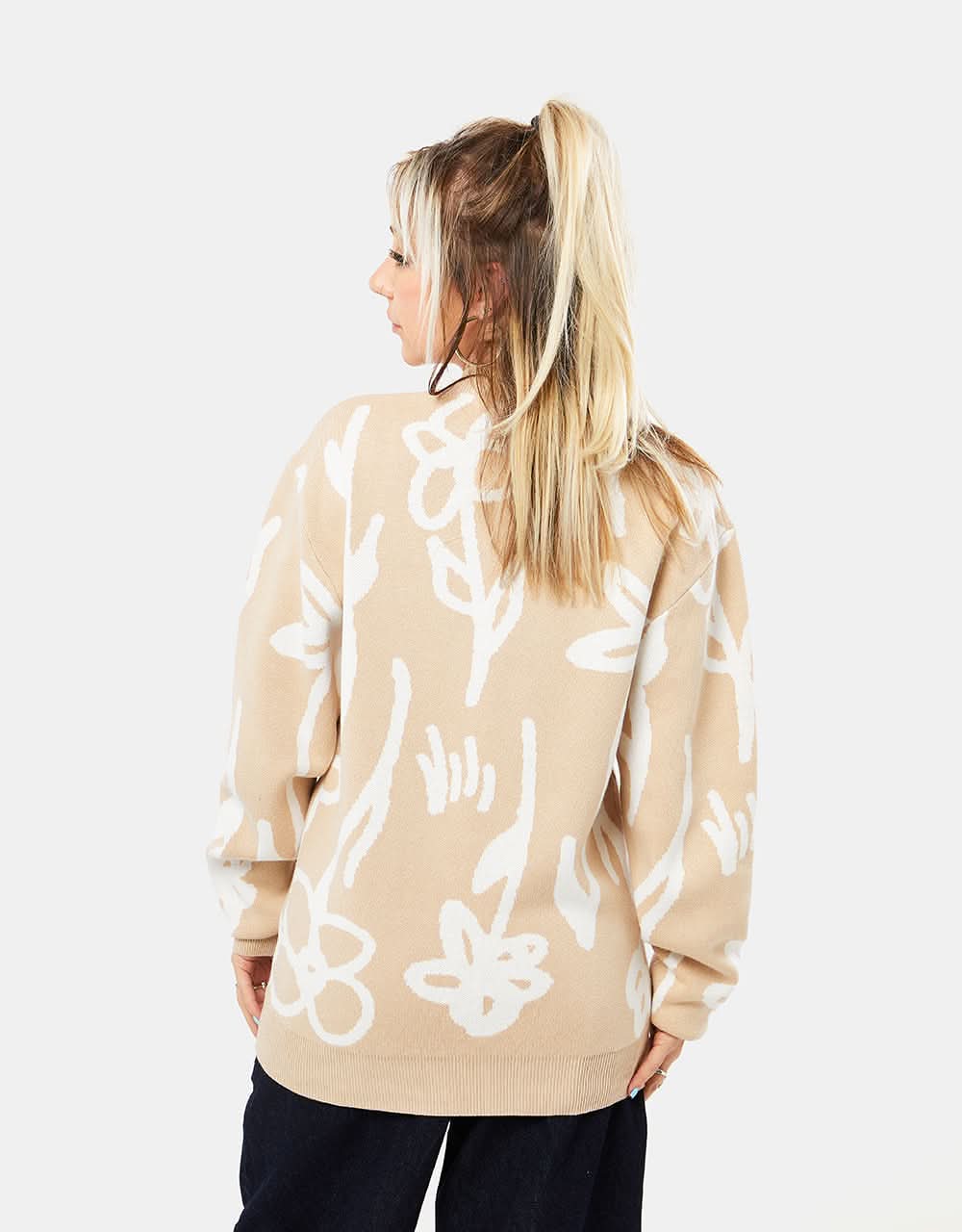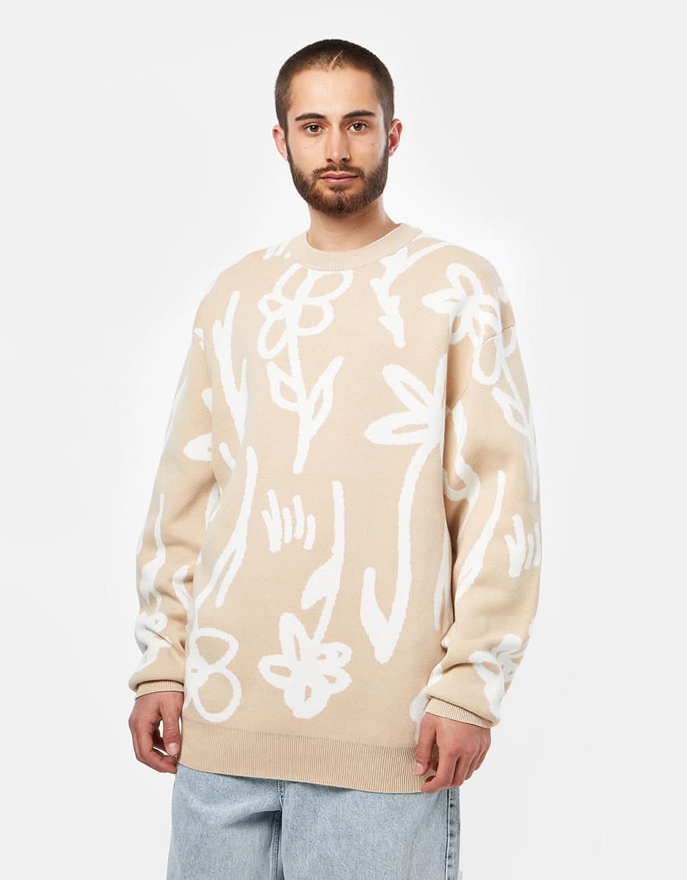 The Route One Wildflower Knitted Sweater is carefully crafted with a heavyweight 12-gauge cotton yarn and cut to a modern, slouchy fit that places itchy knitwear firmly in the past.