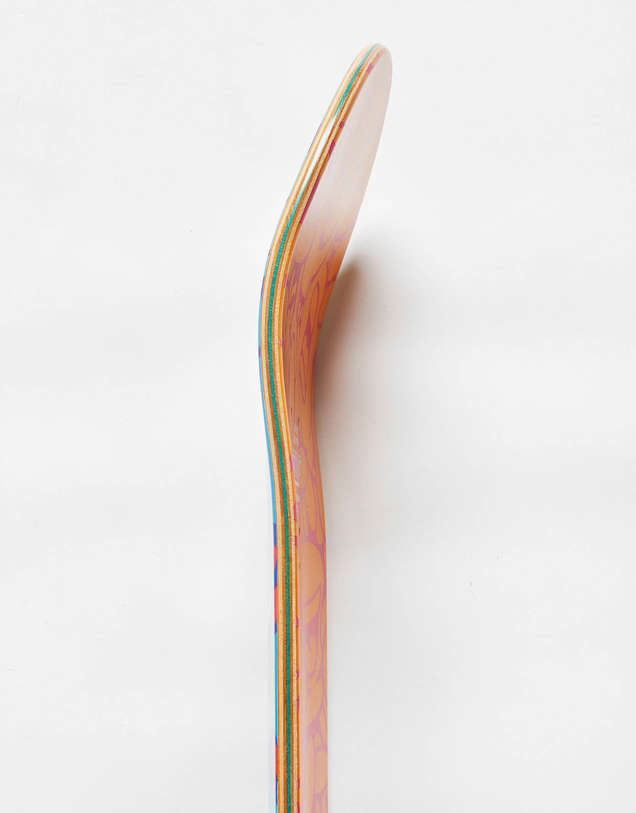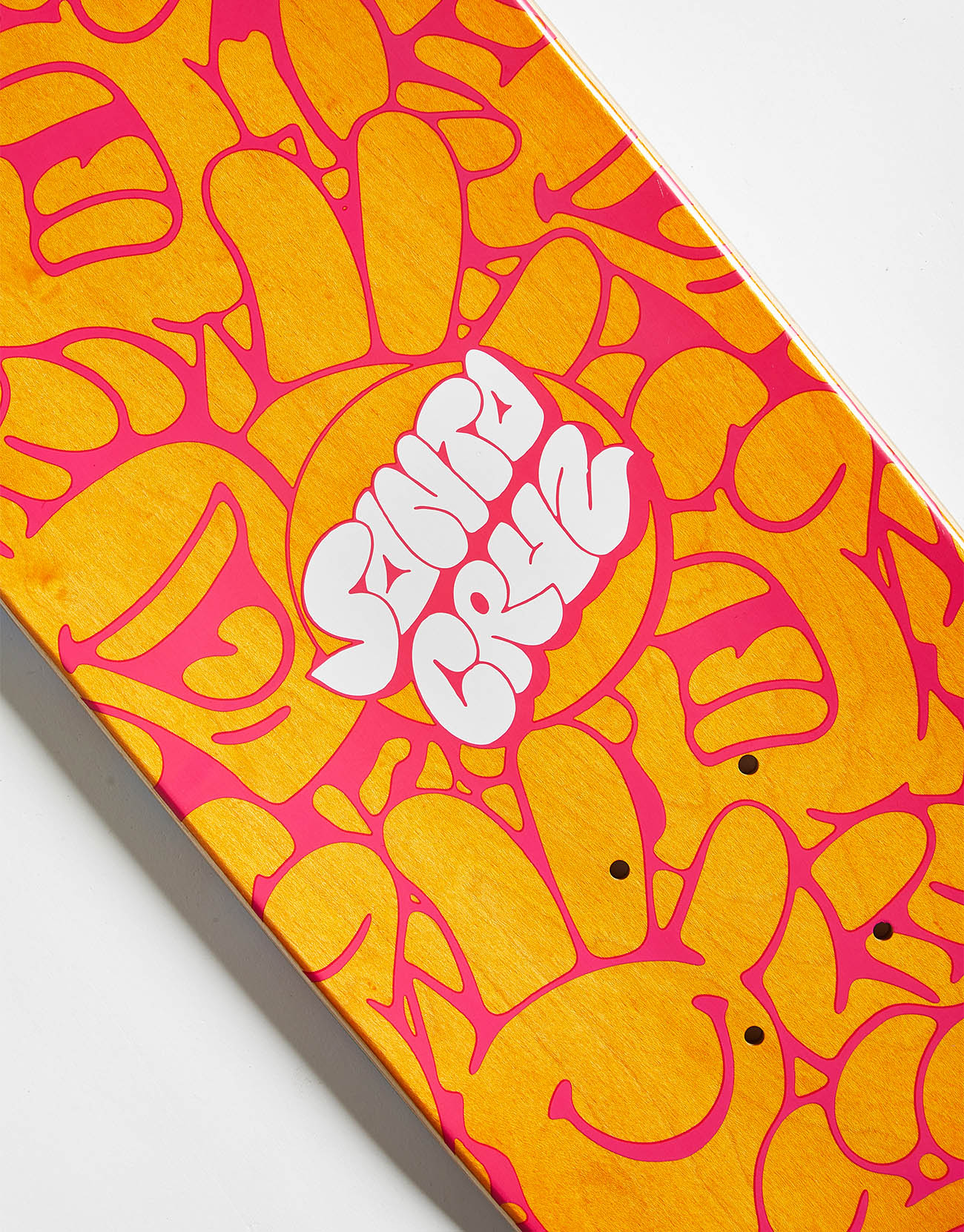 The Santa Cruz Pile FeelBase Skateboard Deck is a team board coming in at 7.75" wide with a 12.75" wheelbase and spot gloss graphics on orange stained veneers.