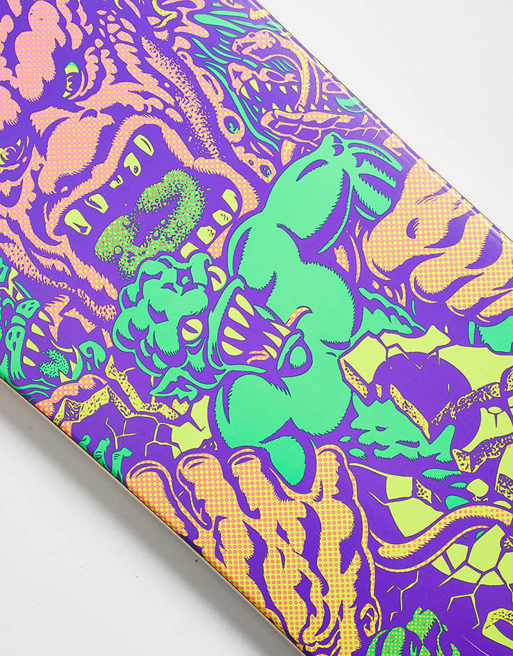 The Roskopp Five Drop Through Longboard is a downhill skater's dream, equipped with super soft Slime Balls wheels for a fast and smooth ride. It features a drop through, reversed kingpin truck setup and artwork by the master behind some of skateboarding's most iconic graphics, Rob Roskopp.