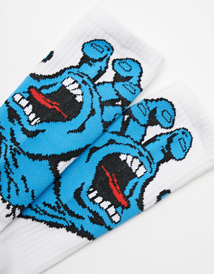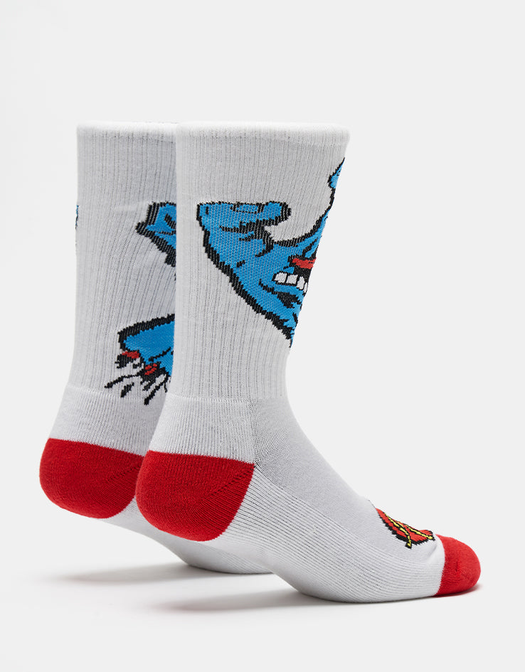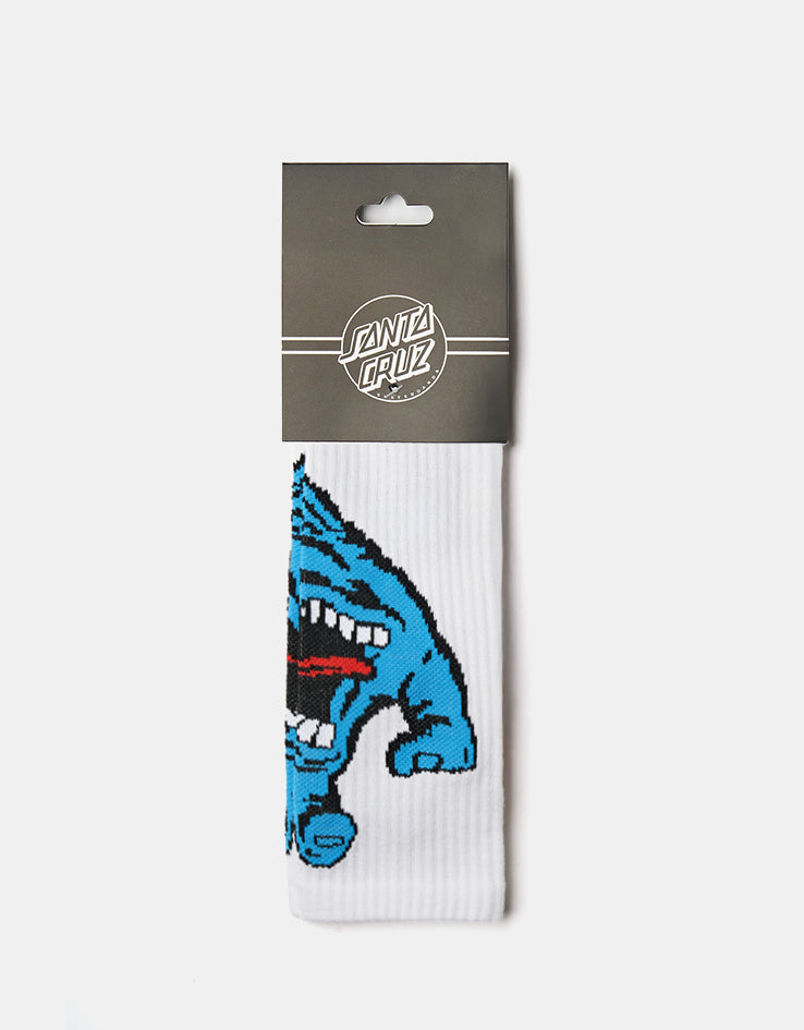 Step up your sock game and showcase your love for skate culture with the Santa Cruz Screaming Hand Socks in White.