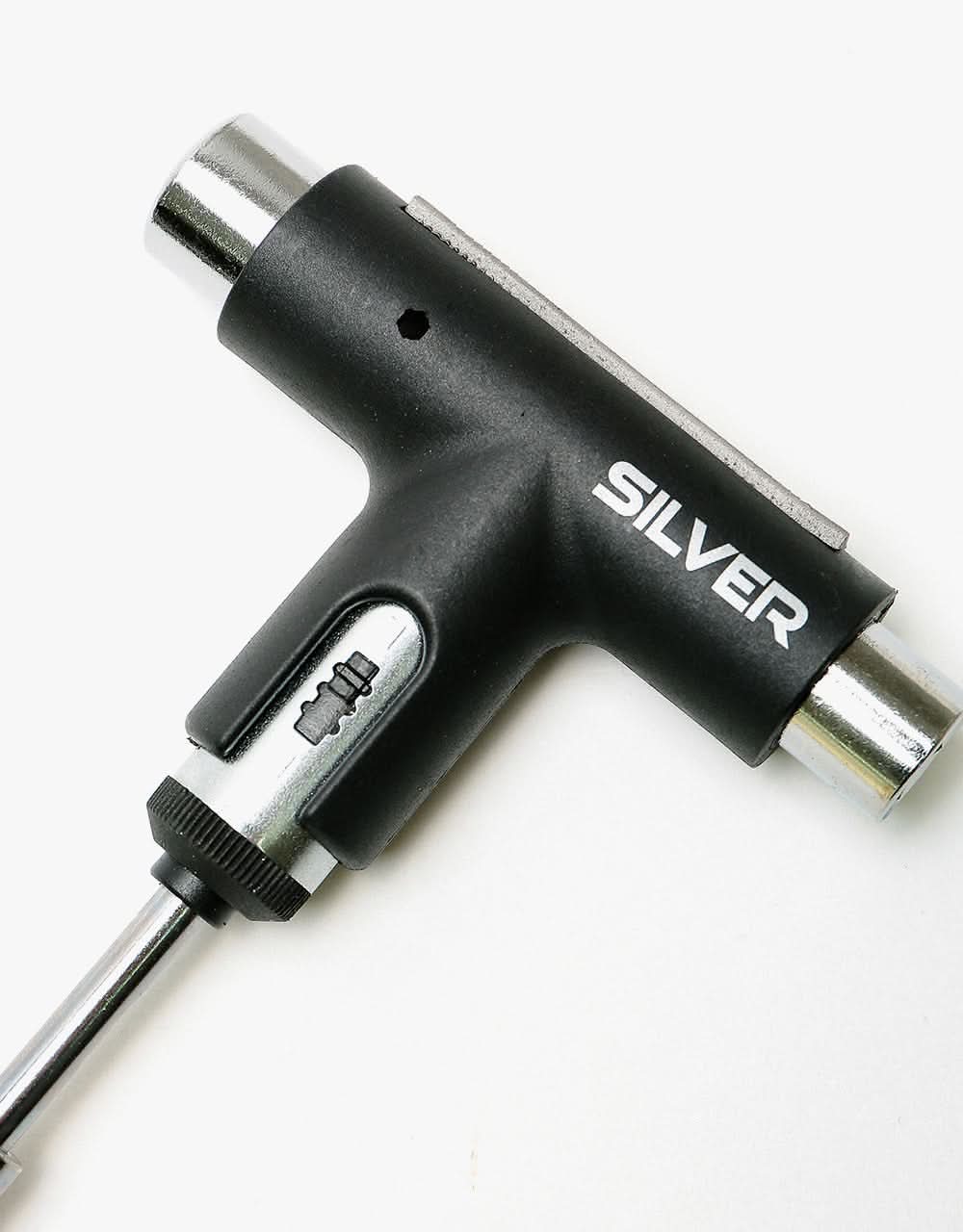 The Silver Tool has been a go-to tool for skaters for some time now. this tool looks standard but is far from. Featuring a rachet for your hardware, this tool will get trucks off and on a board in minutes. The file feature on the top of the tool helps scoring grip tape when setting up a new board, this means all you need to set up a fresh deck is this tool and a blade, convenience at its best!