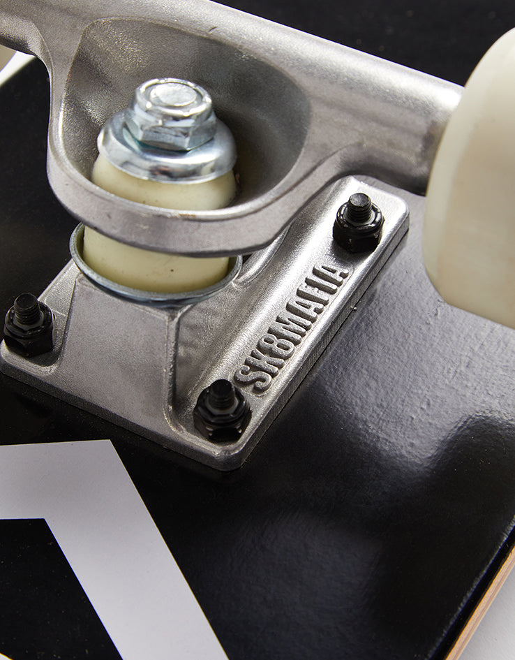 The Sk8Mafia House Logo WB Micro Complete Skateboard comes fully set up and ready to skate. The deck features the iconic Sk8Mafia branding in white on a black background and is a micro deck coming in at 6" wide. It comes fully equipped with raw trucks and Sk8Mafia wheels, making it the ideal board for smaller humans or those wanting to have a bit of fun on a smaller deck.