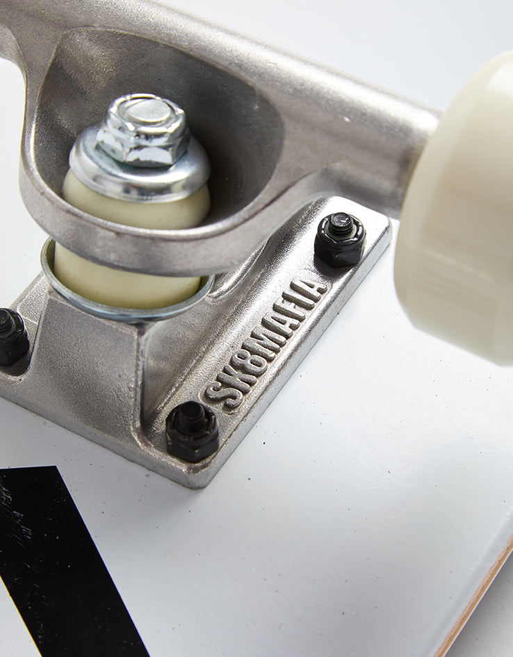 The Sk8Mafia House Logo WB Micro Complete Skateboard comes fully set up and ready to skate. The deck features the iconic Sk8Mafia branding in black on a white background and is a micro deck coming in at 6" wide. It comes fully equipped with raw trucks and Sk8Mafia wheels, making it the ideal board for smaller humans or those wanting to have a bit of fun on a smaller deck.