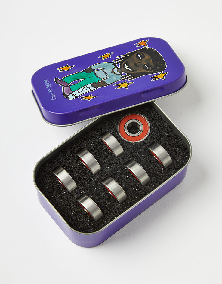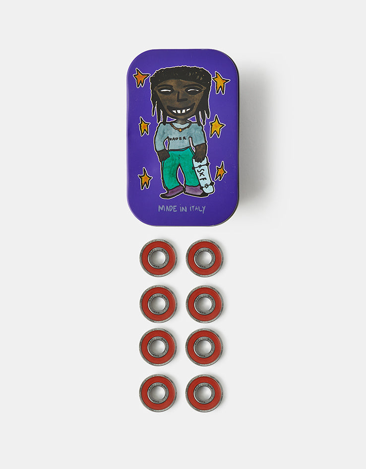 The SKF Kader Pro Skateboard Bearings are a signature bearing for Kader Sylla. They are built with high-quality industrial steel, a glass fibre reinforced polyamide cage and added with low friction grease, special low friction shield and comes in a custom designed Kader box.