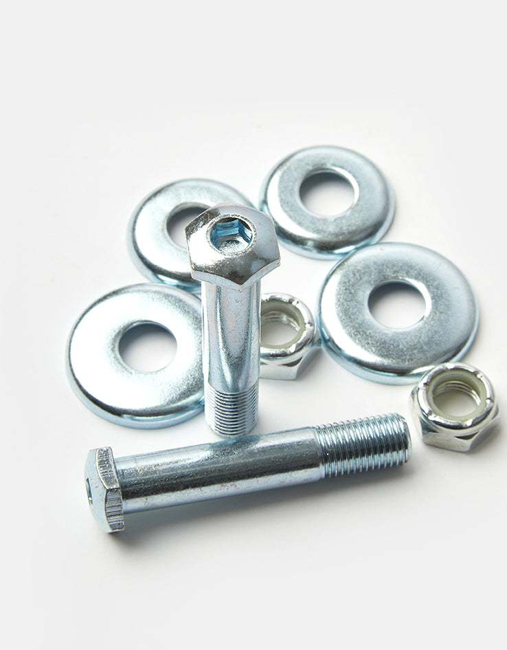 The Slappy Inverted Kingpins are suitable for any trucks on the market that have an inverted baseplate. The pack comes with 2 Inverted kingpins with nuts, as well as 2 Top & 2 Bottom bushing washers.