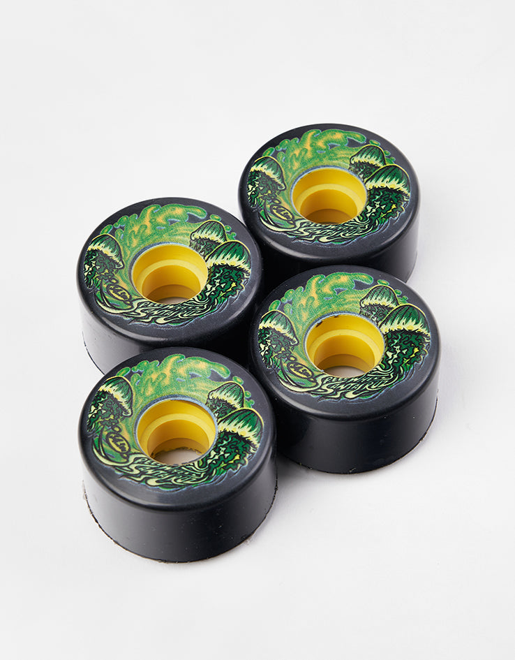 The Slime Balls Jelly Fish Mini OG 78a Skateboard Wheels have a cool jellyfish graphic on black with yellow core. Mini OG Slime is a versatile, symmetrical center bearing small cruiser wheel shape with soft, all terrain 78a urethane.