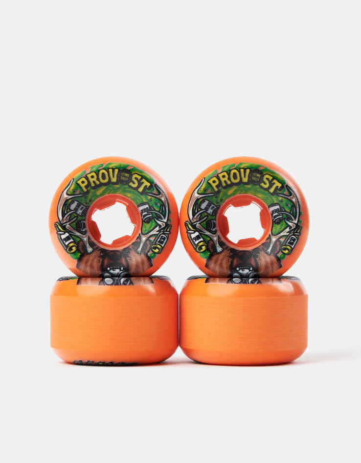the Slime Balls Provost Beer Vomit Mini Wheels. Colin Provost has one too many for his guest pro tyre, spewing up orange high performance 97a urethane in 54mm chunks.