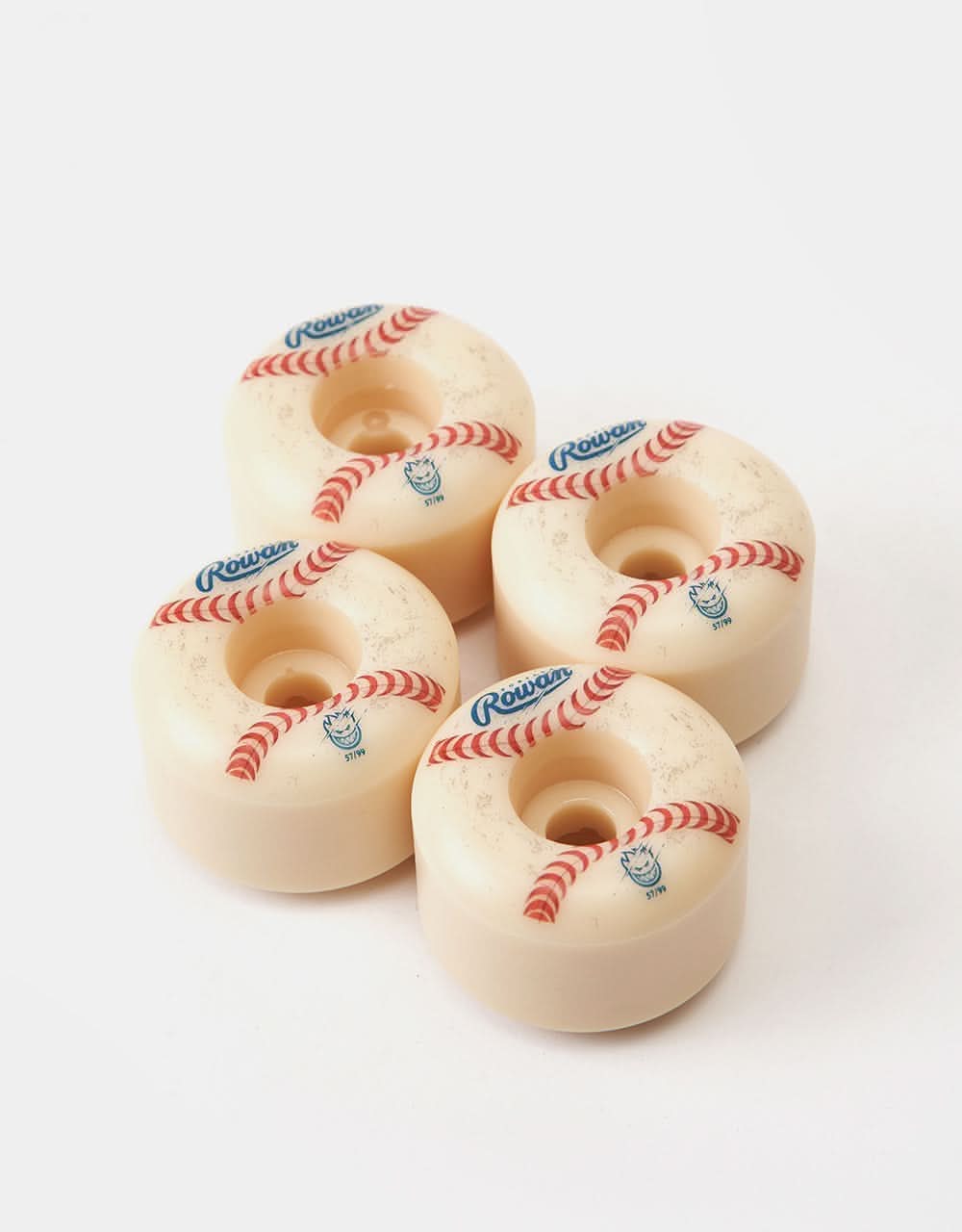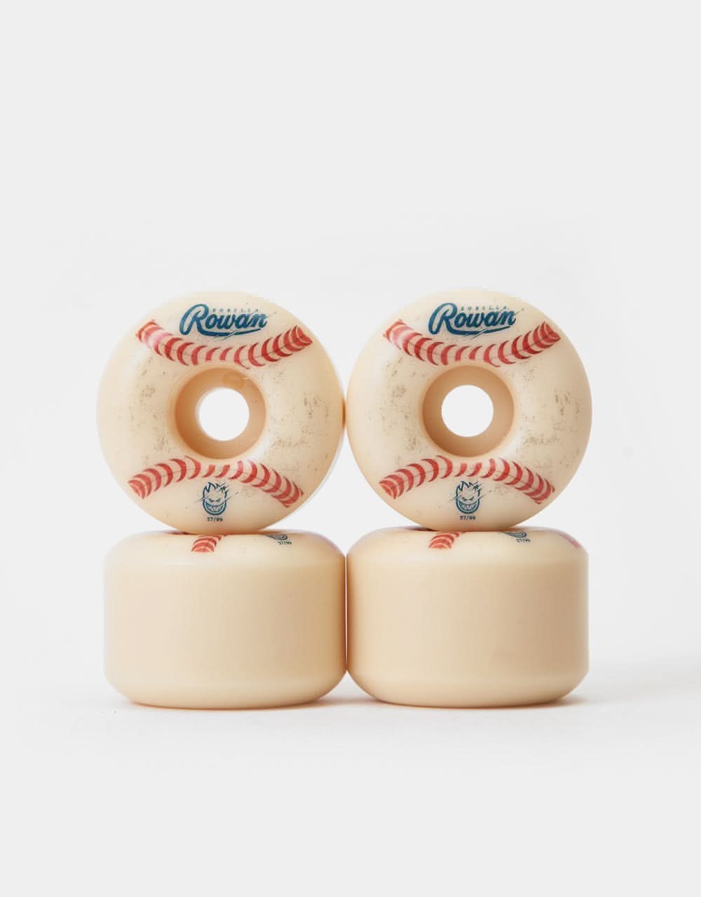 Rowan Zorilla's new pro wheels for Spitfire feature a baseball themed graphic and on the Radial Full shape. This wheel shape features a rounded cut and super wide riding surface for maximum grip and stability at high speeds.