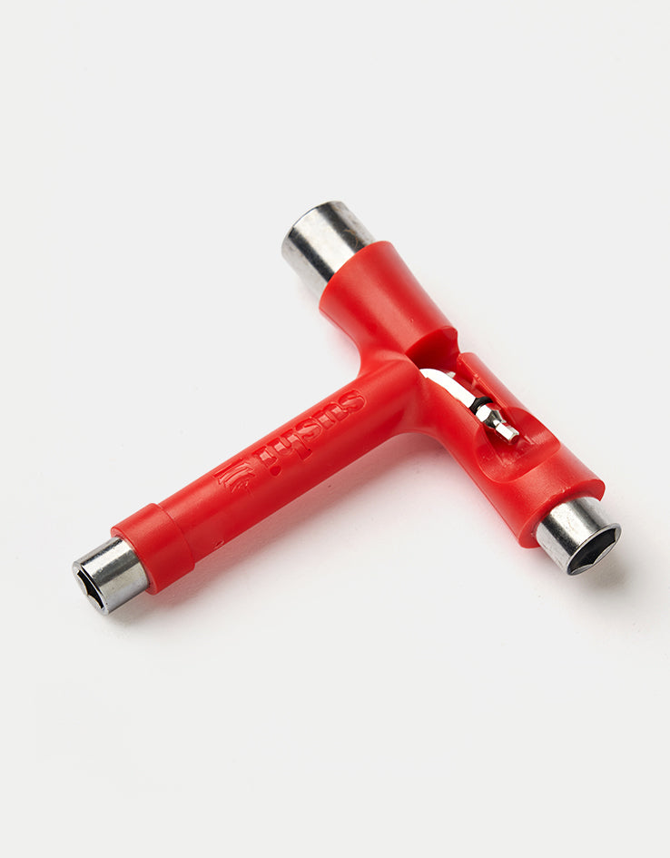 Excellent value skate tool from Sushi Skateboards, the Sushi Ultimate Ninja T Skate Tool comes in red and has all you need for easy assembly of a skateboard. With allen/phillips compatiblity and three different wrench sizes for truck bolts, wheel nuts and kingpins, the Ultimate Ninja Tool has everything you could want, and at a very reasonable price.