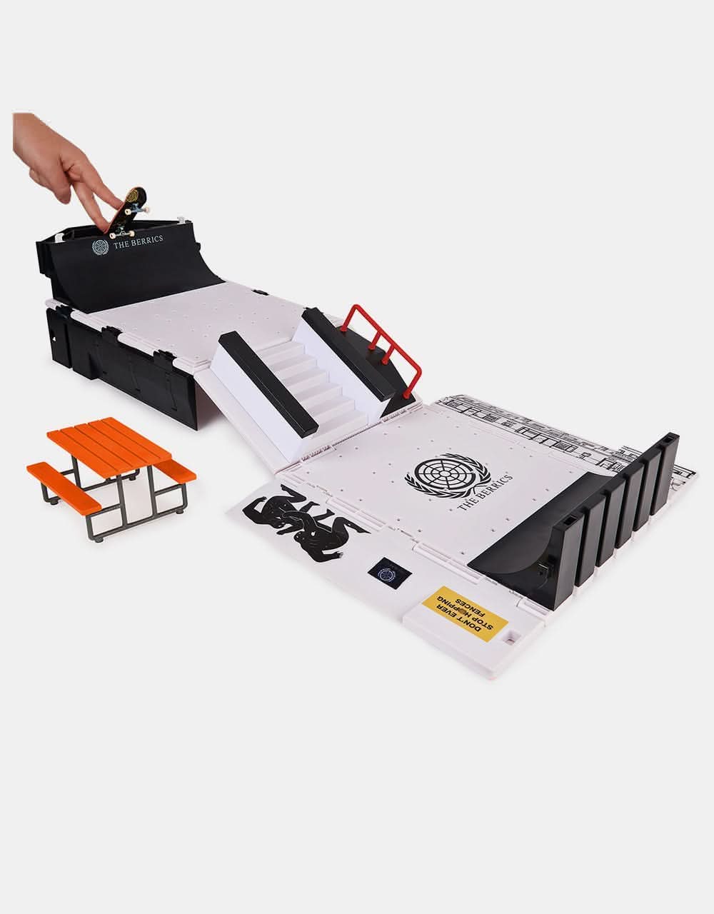The Berrics Transforming Skatepark features realistic obstacles and ramps, just like the ones you would find at a real skatepark. From rails and stairs to quarter pipes and half pipes, this set has everything you need to challenge yourself and master new tricks.
