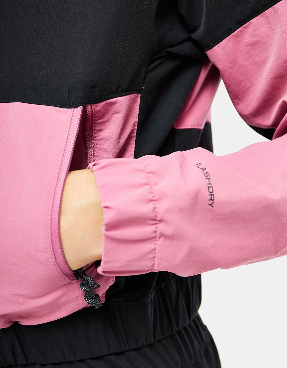 The North Face Women's Phlego Track Top in Red Violet is crafted from a Nylon / Elastane blend and features a full length zip, zip hand pockets, elasticated cuffs and hem and is completed with block coloured panels and TNF branding on the left chest and sleeve.