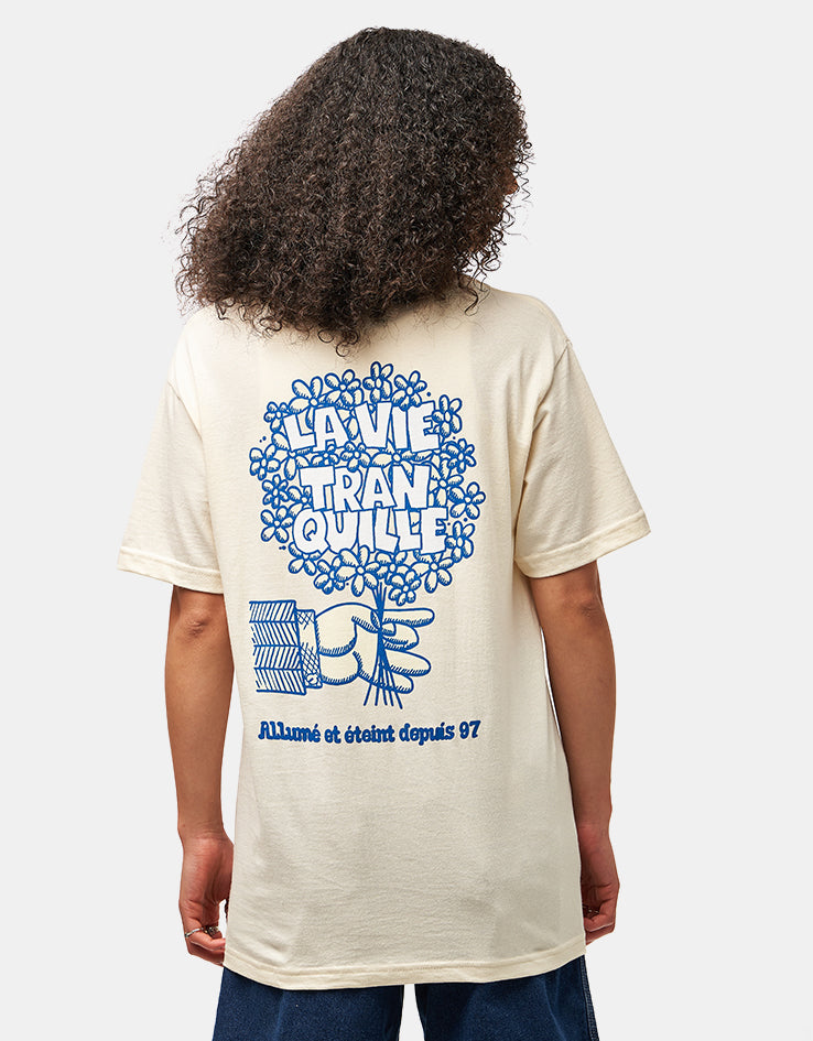 Upgrade your wardrobe with the The Quiet Life La Vie Tranquille Bouquet T-Shirt in Cream, an essential skate addition to any outfit. Composed of 100% cotton, styled in a relaxed fit with screen printed graphics on the front chest and back.