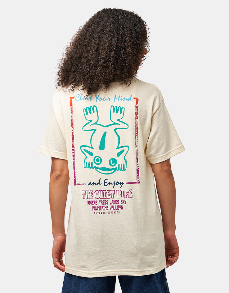 Upgrade your wardrobe with the The Quiet Life Outdoor Division T-Shirt T-Shirt in Cream, an essential skate addition to any outfit. Composed of 100% cotton, styled in a relaxed fit with screen printed graphics on the front chest and back.