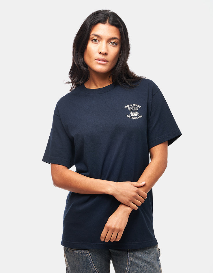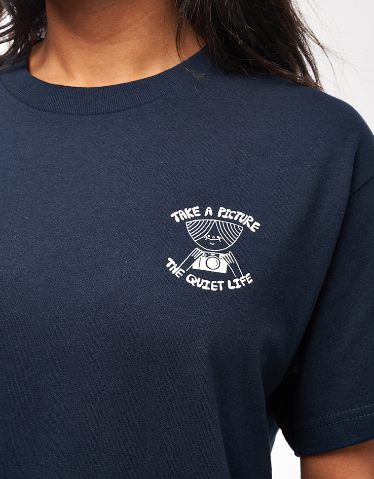 Upgrade your wardrobe with the The Quiet Life Take A Picture T-Shirt in Navy, featuring classic branding from this iconic brand. Composed of 100% cotton, styled in a relaxed fit with screen printed graphics onto the front chest and back.