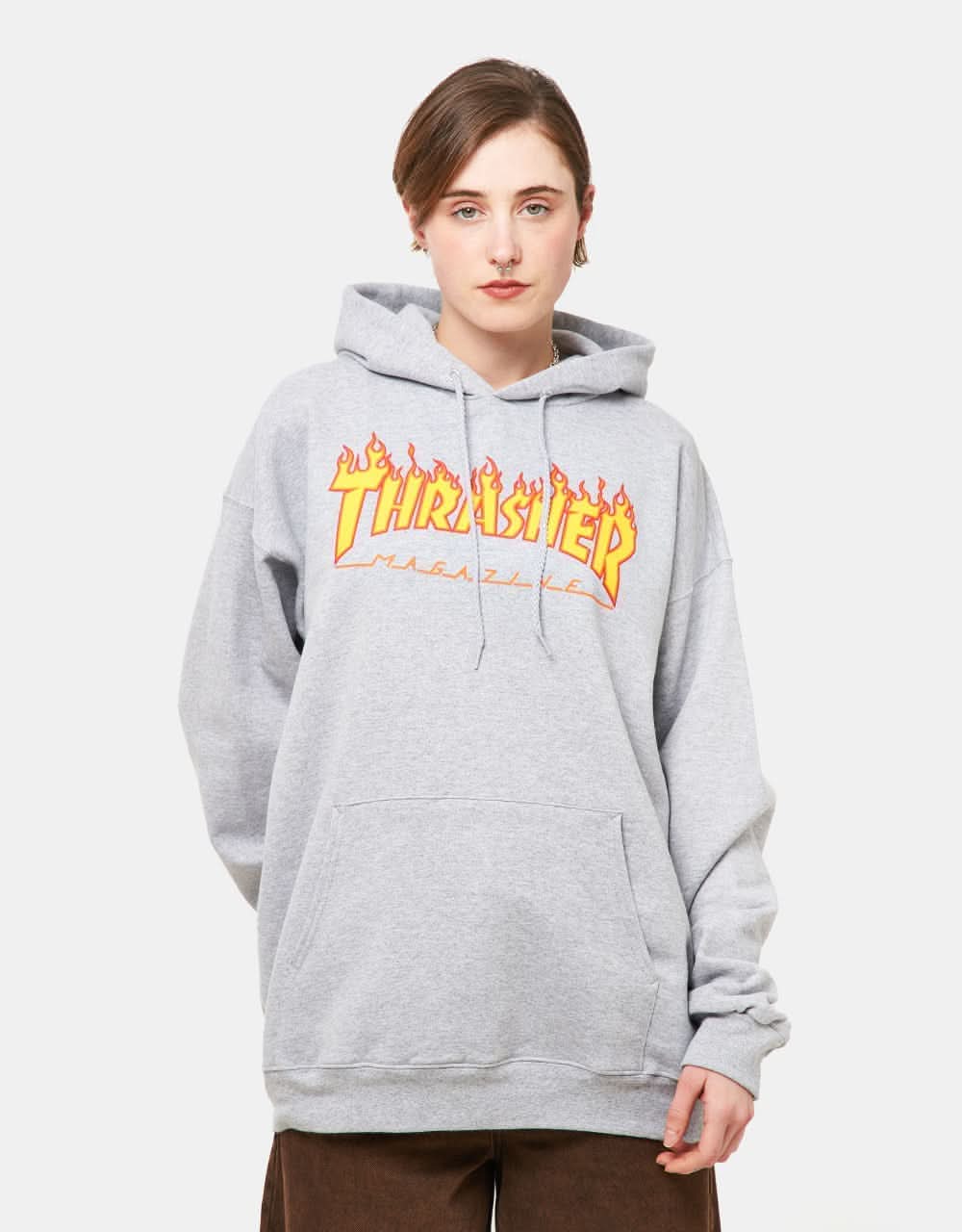 Thrasher Flame Logo Pullover Hoodie - Heather Grey