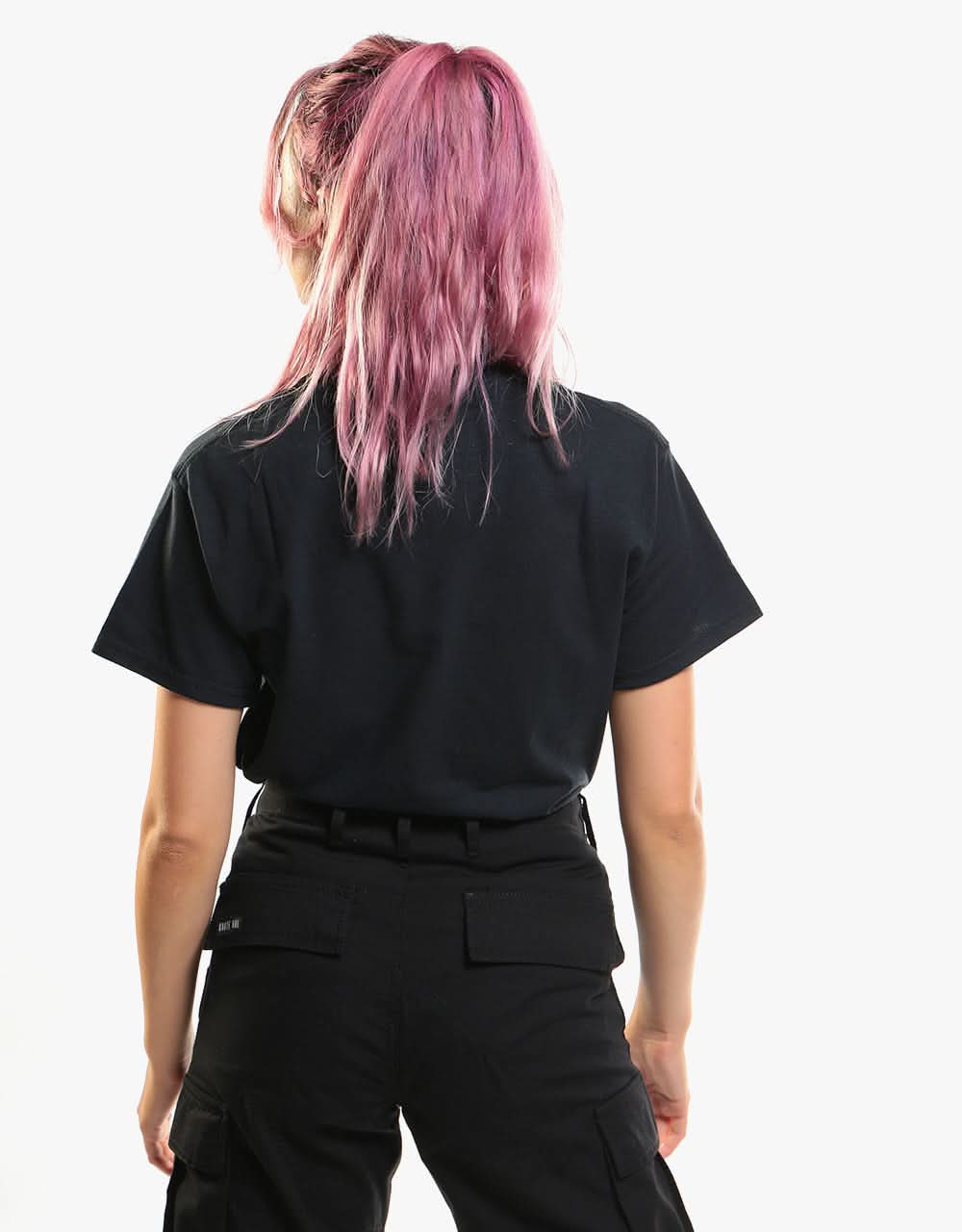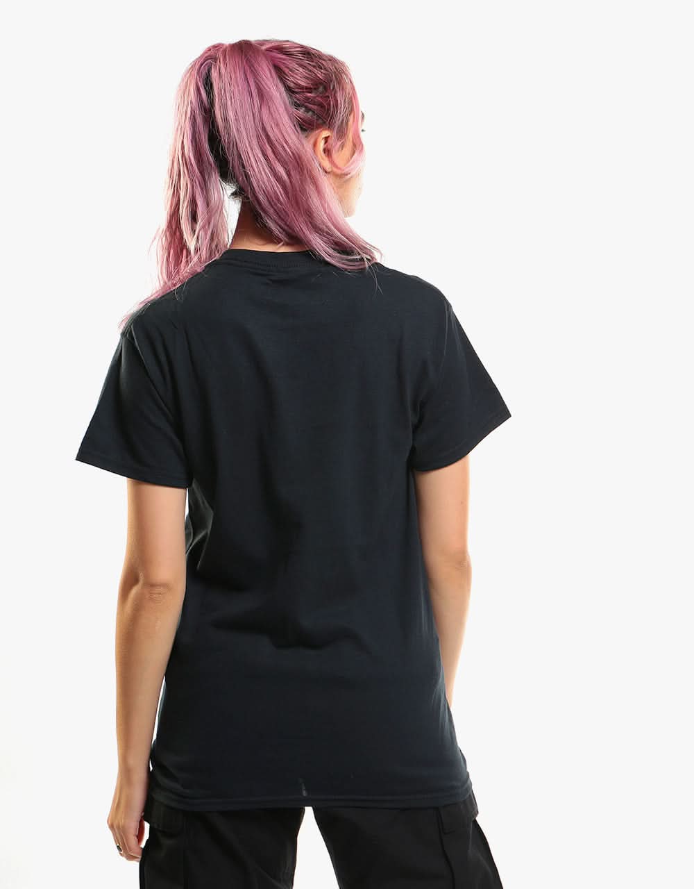 Constructed from 100% thick cotton, this Black tee features a ribbed collar, short sleeves, a woven neck label and a screenprinted chest logo. A comfortable, skate-ready tee that is suitable for everyday wear.