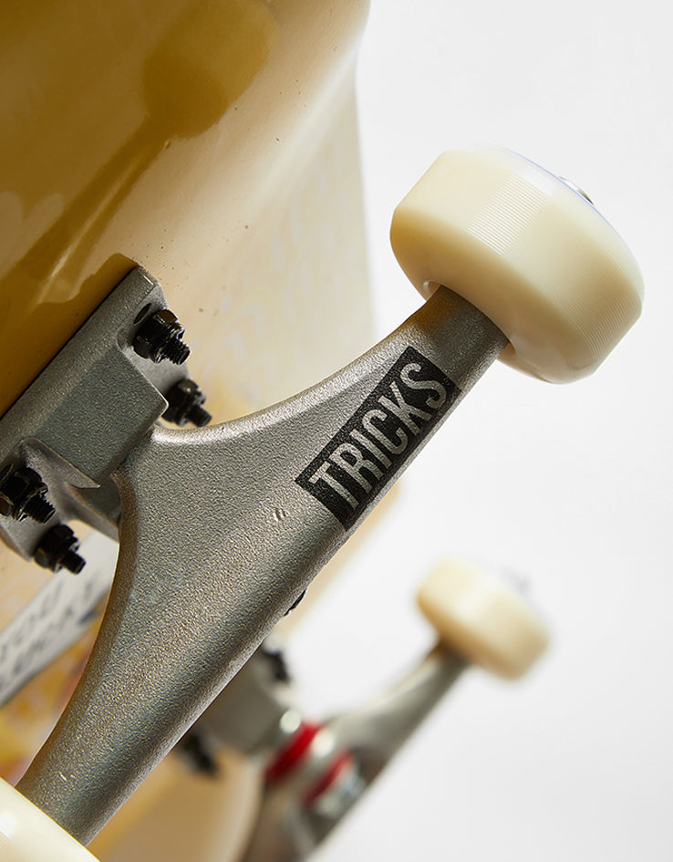 The Lucky Fast complete from Tricks features a drawing of a cool cat, in the centre of the board with Tricks branding featured on the tail. This complete features Tricks trucks, wheels and Abec 5 bearings. Perfect for a first skateboard or someone looking to upgrade from their current setup.