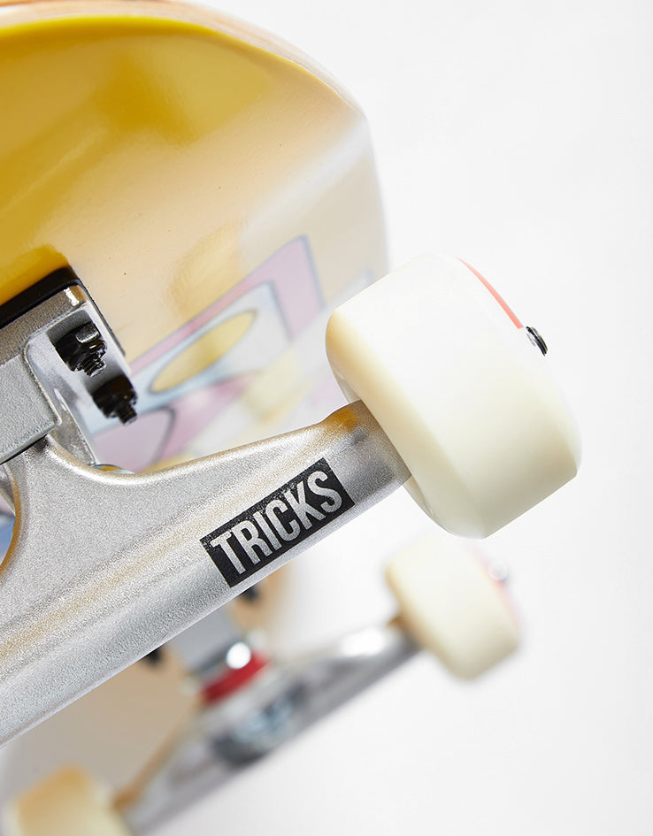 The Tricks Spinner Mini Complete Skateboard comes fully set up and ready to skate. The 8.25" wide board comes in much shorter than your average board at 25.75" long and with a soft foam top, making it the ideal board for those little skaters. The board comes fully equipped with raw trucks and 80A hardness 56mm wheels for a smooth ride.