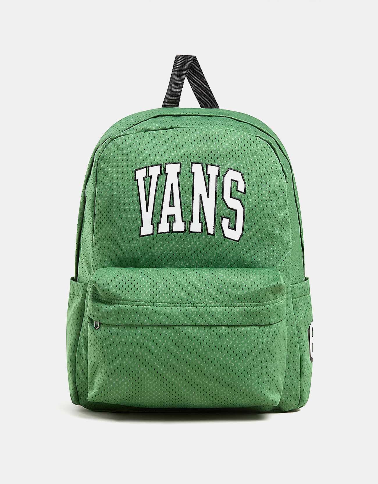 The Vans Old Skool Backpack in Fairway combines classic skate style with modern functionality. Made from durable fabric, this backpack features a spacious main compartment, a zippered front pocket for easy access to essentials, and padded shoulder straps for comfortable wear. The iconic Vans checkerboard pattern accentuates its design, while the Fairway color adds a fresh touch.