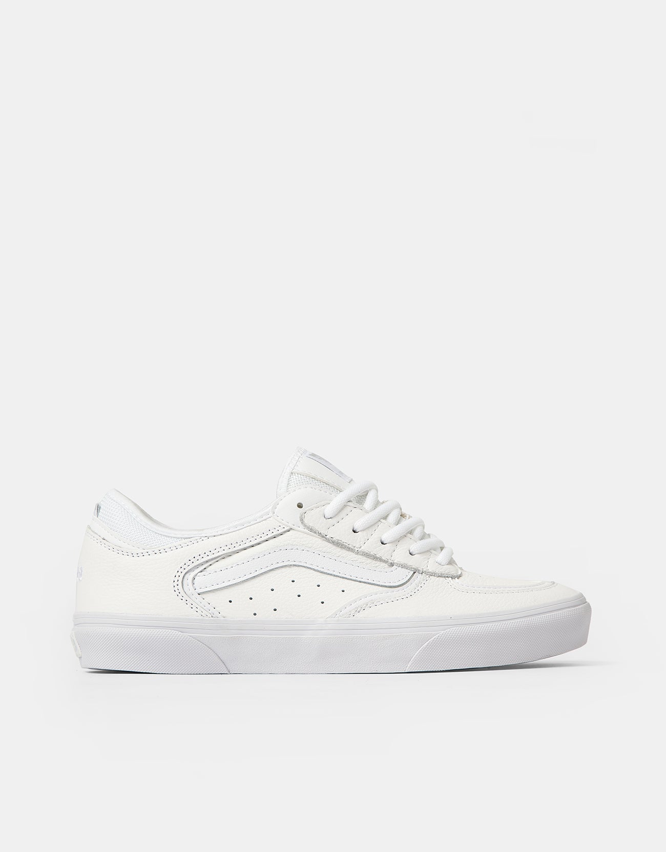 Introducing the Vans Skate Rowley Shoes in White/White, a celebration of the 25-year legacy of the legend that is Geoff Rowley. The Skate Rowley echoes Vans' rich history, whilst pushing skate culture forward at the same time. The iconic silhouette has been redesigned for the demands of modern skateboarding. A vulcanised shoe with increased durability: DURACAP™ reinforced materials, a deeper knurl texture on the toe bumper, and heightened sidewalls for a heritage look and added protection. The uppers have been fully redesigned with a molded heel counter and internal tongue straps for a locked-in feel and supreme board control. The Skate Rowley comes with Vans' proprietary SickStick™ gum rubber compound, their stickiest rubber yet, for ultimate grip. That's not all, PopCush™ energy return footbeds protect your feet and give extra cushioning during those longer skate sessions. All this is wrapped up in a durable suede and mesh textile package in the upper, honoring the legacy of the original 1999 Rowley skate shoe with modern upgrades.