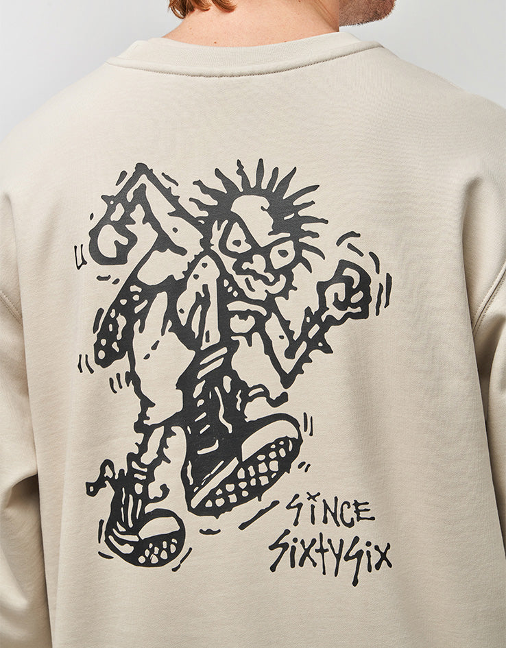 Upgrade your wardrobe with the Vans Stomper Loose Fit Crew in Taupe Mist, an essential addition to everyday outfits. Composed of a cotton blend, styled in a relaxed fit with screen printed graphics on the front chest and back.