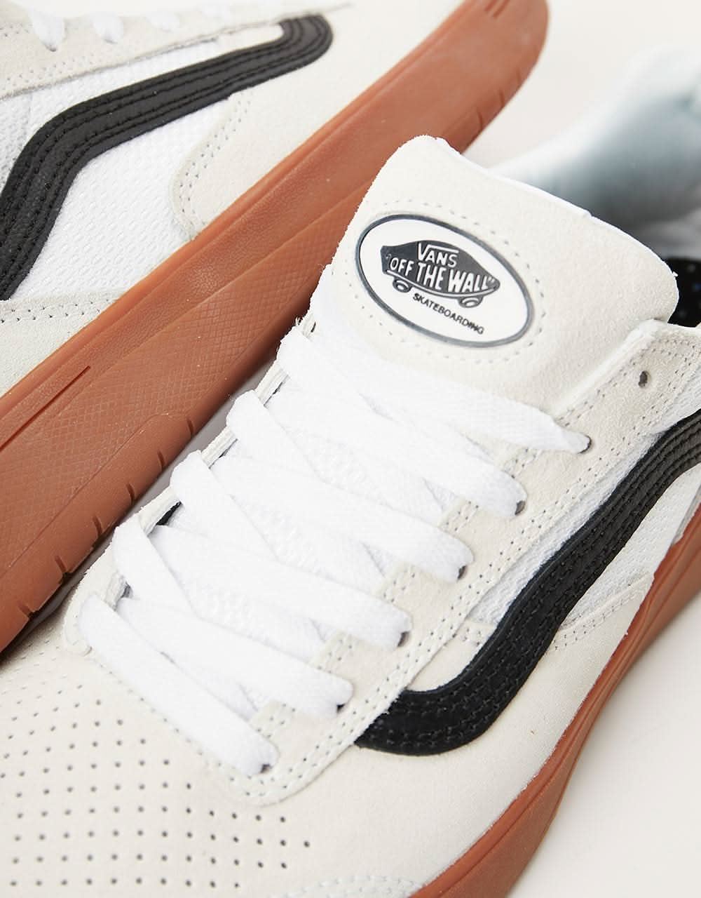 Vans have always been at the forefront of introducing new technologies for skate shoes and the Zahba in the White/Black/Gum colourway seems to have come with all of them. The IMPACTWAFFLE™ sole provides great impact protection with no comprise of boardfeel. As for comfort the Zahba is equipped with the VR3CUSH™ midsole which is made with a biobased EVA foam. Also, a Low-profile SickStick™ outsole with a new engineered tread pattern for enhanced impact protection, grip, and durability. Finally, a DURACAP™ reinforced tow cap for increased durability. The black, white and gum colourway of this shoe is reminiscent of the classic, popular Vans Old Skool.