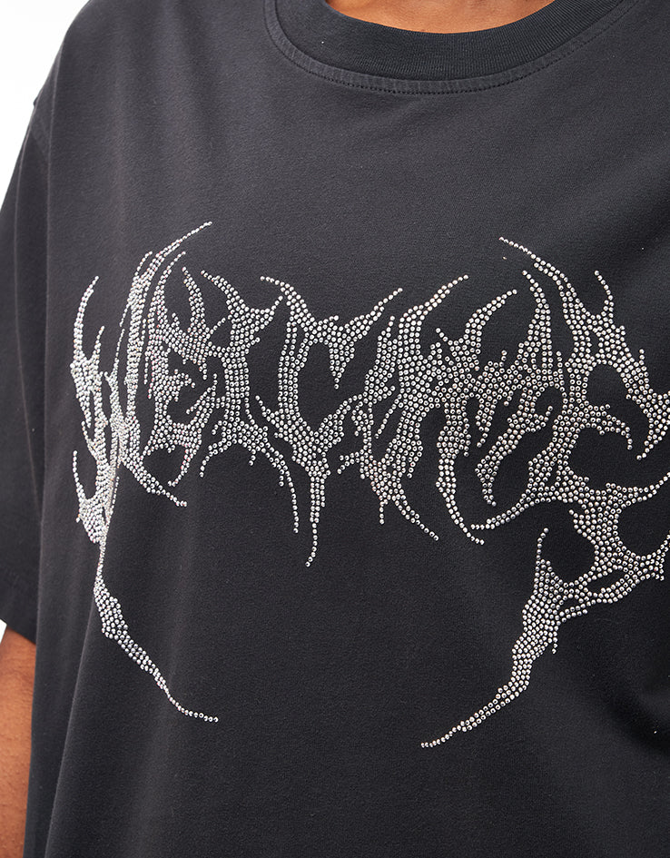 Upgrade your wardrobe with the Welcome Glam Fang Garment-Dyed T-Shirt in Black, featuring classic branding from this iconic brand. Composed of 100% cotton, styled in a relaxed fit with bejeweled graphics onto the front chest.