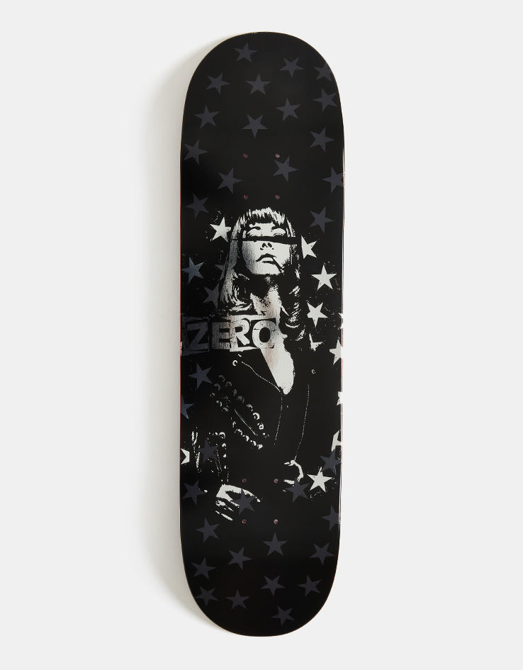 The Zero Kiss Off Foil Skateboard Deck is a team board coming in at 8.5" wide, featuring a starry design .